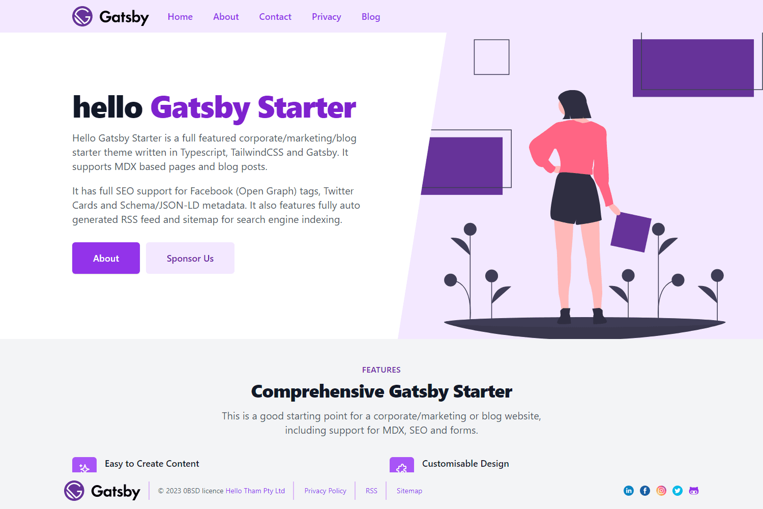 - Full SEO support (via React Helmet) including Open Graph, Twitter Cards and Schema.org via JSON-LD